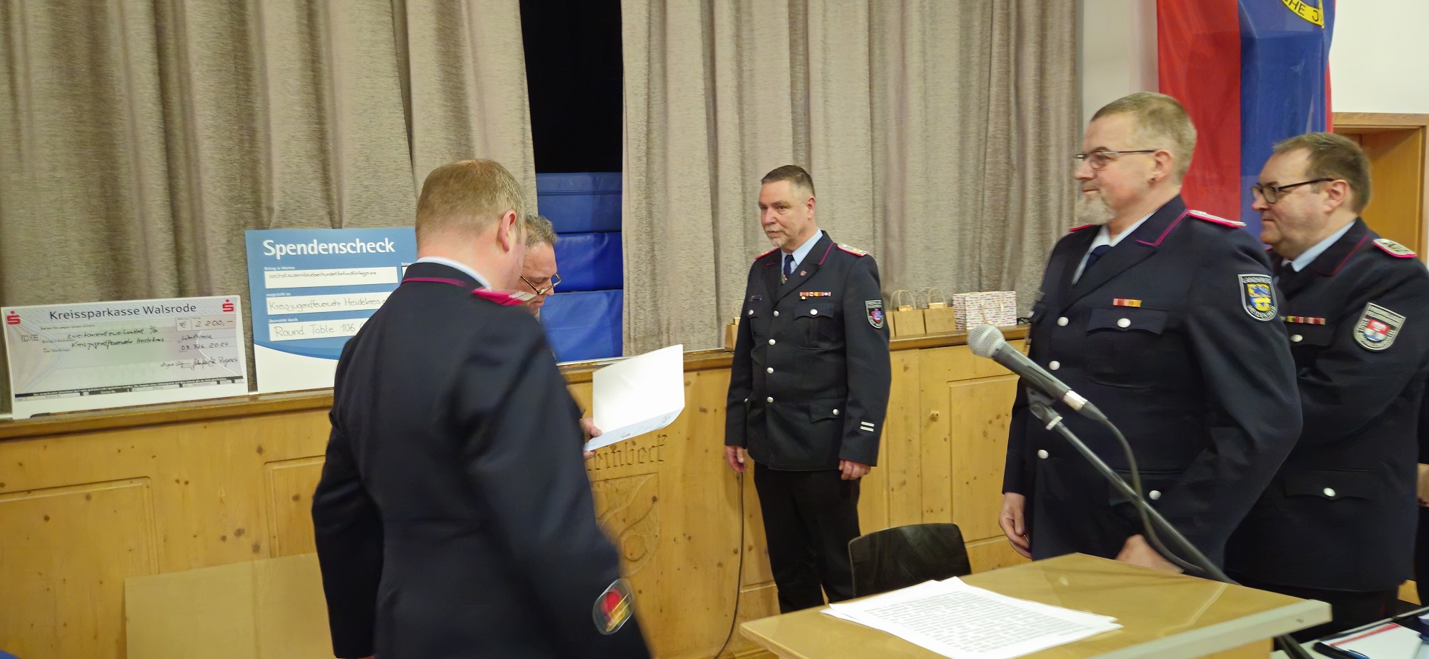 Für sein Engagement insbesondere beim Kreiszeltlager wurde der stellv. Stadtbrandmeister Walsrode Holger Krause vom Kreisbrandmeister Thomas Ruß mit dem Ehrenzeichen des Landesfeuerwehrverbandes in Silber ausgezeichnet.